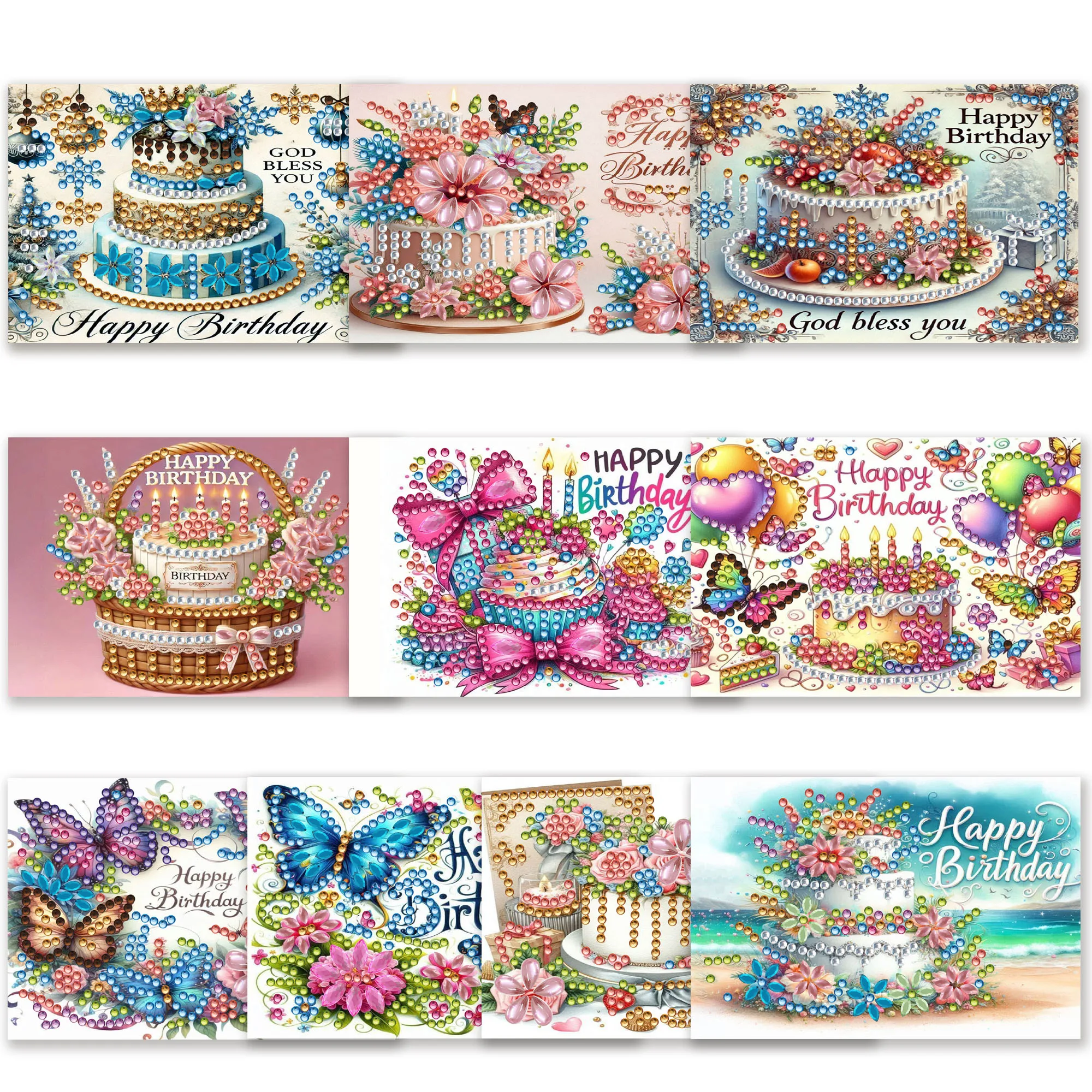 10pcs DIY Diamond Painting Crystal Scratch Card Party Event Gift Card (Birthday)
