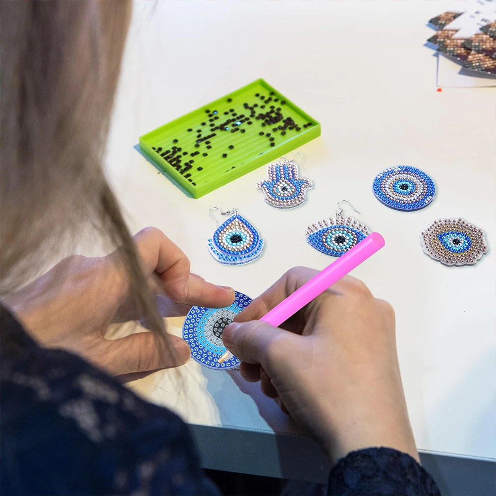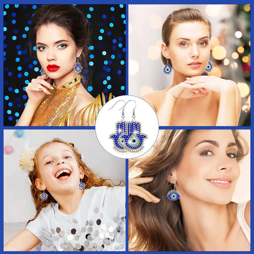 12 Pairs Double Sided Diamond Painting DIY Earring Making Kit Evil Eye Dangle Drop Diamond Art Earring Kit Diamond Glitter Art Earring Kit Xmas Party Ornaments Gifts