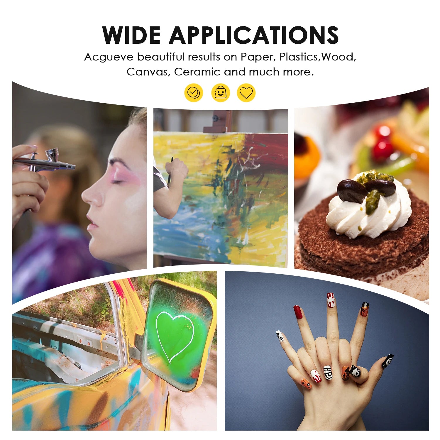 đ¨ăSmoother & Ready to SprayăAirbrush paint sets are ready to use and easy to apply. our airbrush paint uses better formula with proper ratio. Every airbrush color has wonderful airbrush flow characteristics. They can match well with your airbrush with a smooth consistency and wonât clog it up. Thinning is not required. Squeeze bottles make it easy to control the pigment.