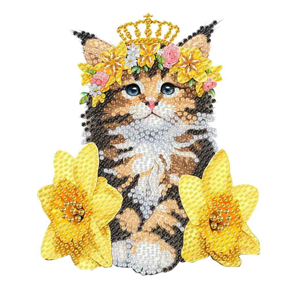 - 5D DIY Diamond Art designed for tabletop decorations, so you can create a glossy, eye-catching piece right where you work, featuring a playful cat shaking its head.