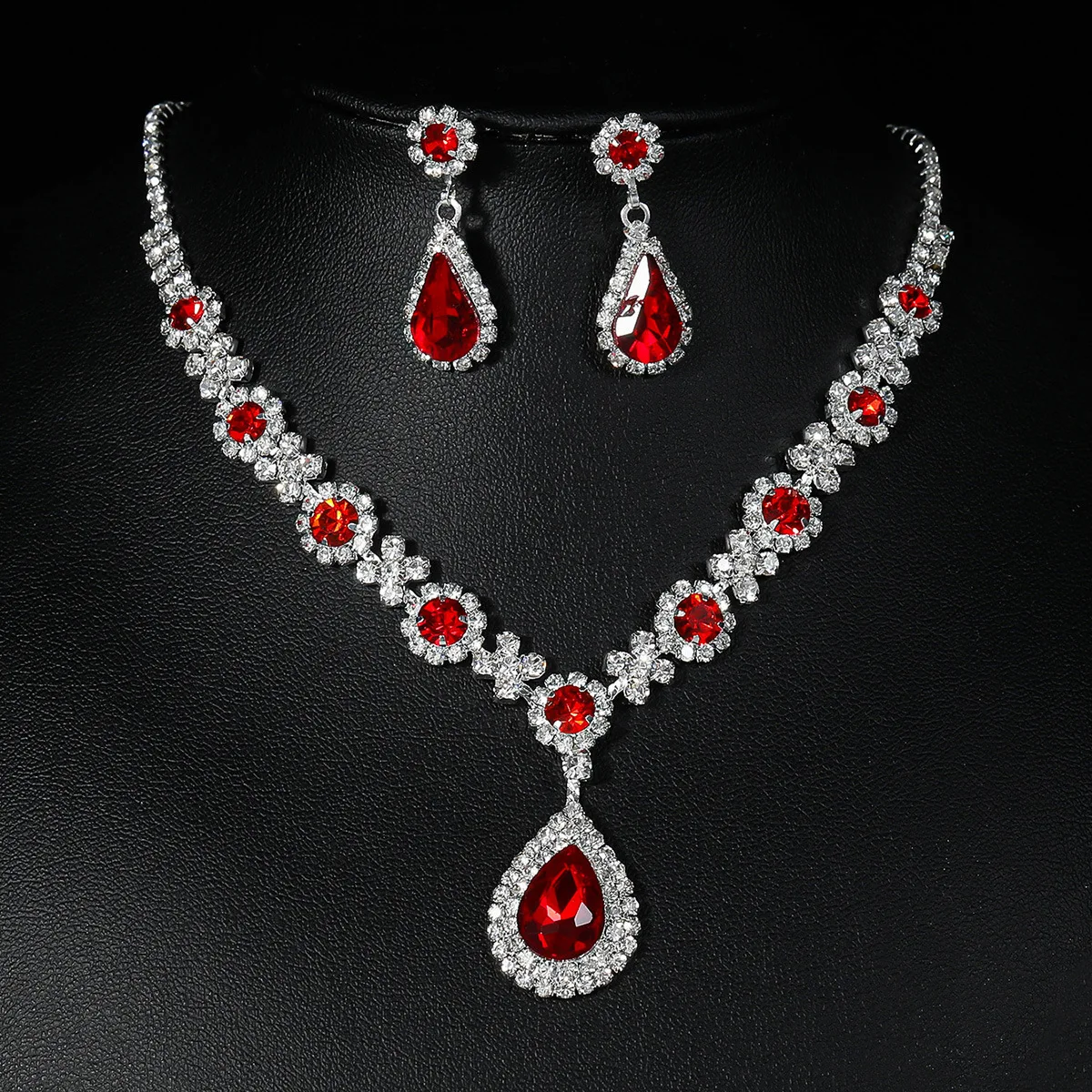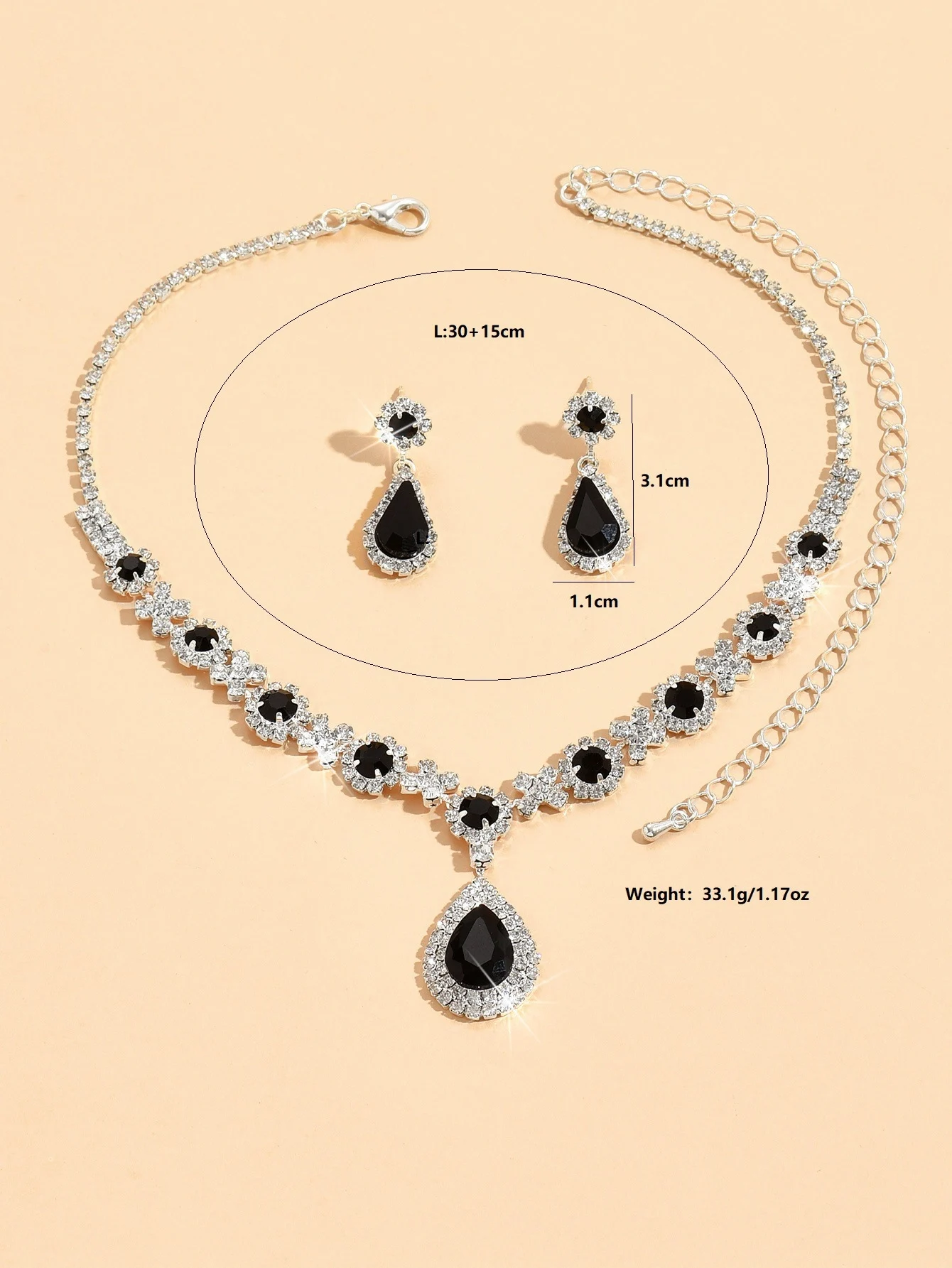 3PC Women's Trendy Copper Claw Chain Series Water Drop Gem Necklace Earrings Jewelry Set Wedding Banquet Party Holiday Gift