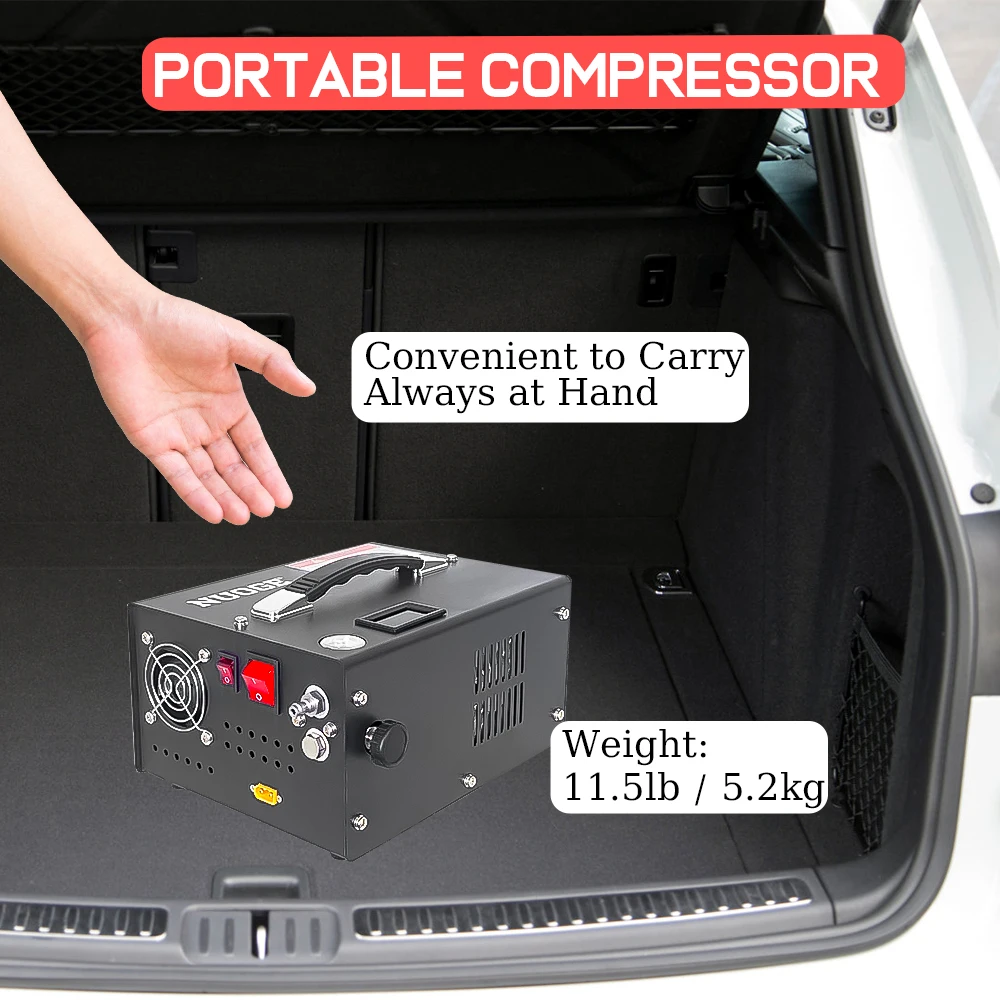 4500Psi 30Mbar Portable PCP Air Compressor Pump 12VDC/110V Power Oil/Water-Free High Pressure Diving Bottle