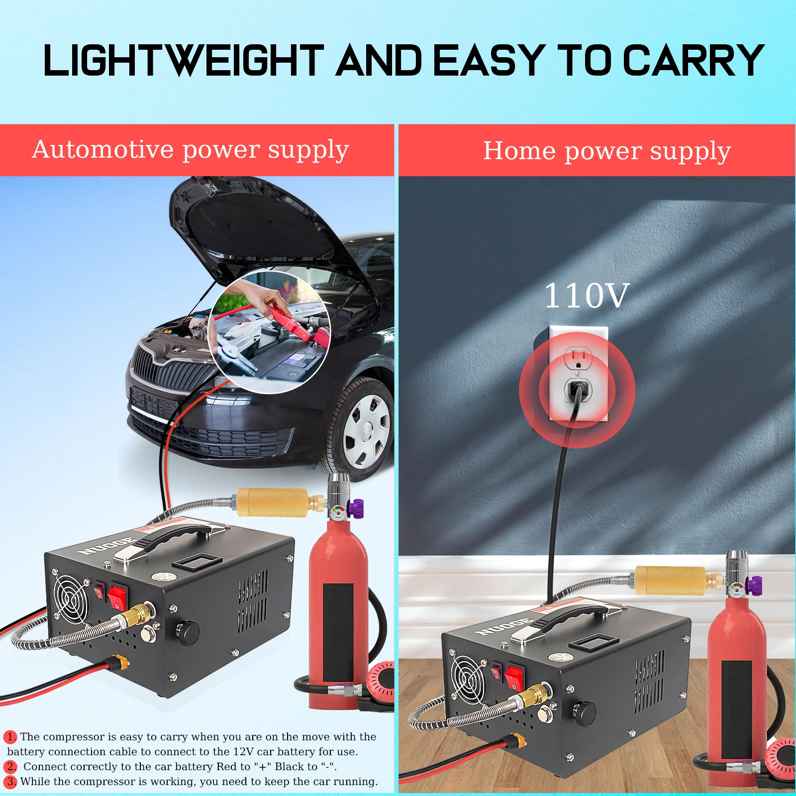 car battery and home electricity dual-use design allows you to inflate your airsoft gun