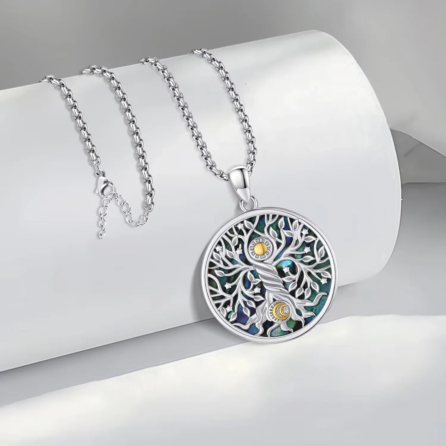 925 Sterling Silver Tree of Life Necklace Pendant Abalone Shell Celtic Knot Family Tree Jewelry for Men and Women Father's Day Gift