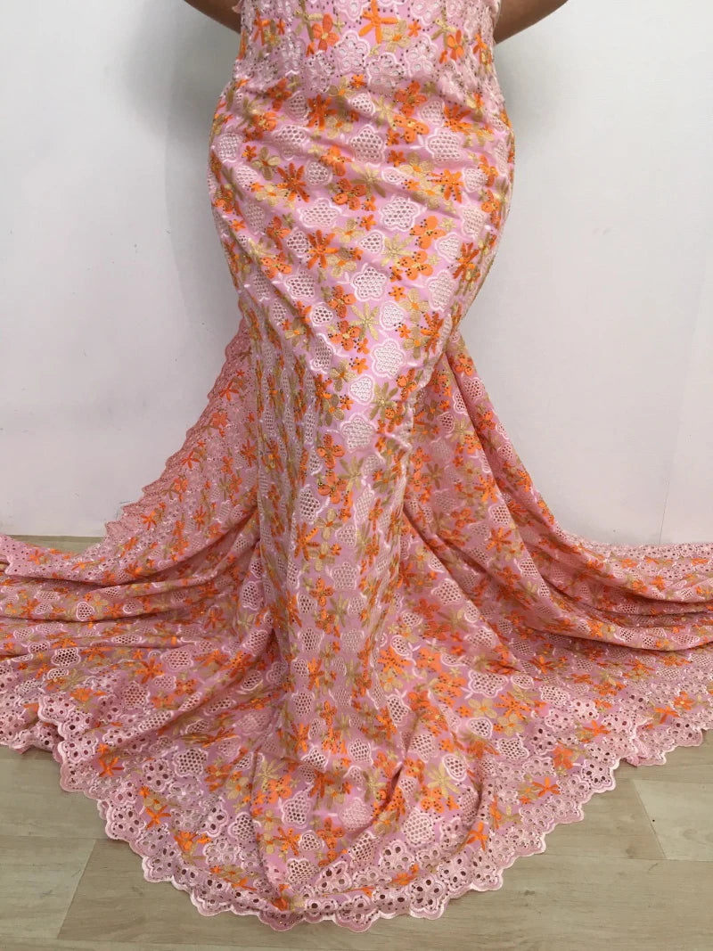 African Lace Fabric 2025 Swiss Voile Cotton Lace Elegant Nigerian Embroidered Cotton Lace Fabric 5 Yards for Women Sew A4016