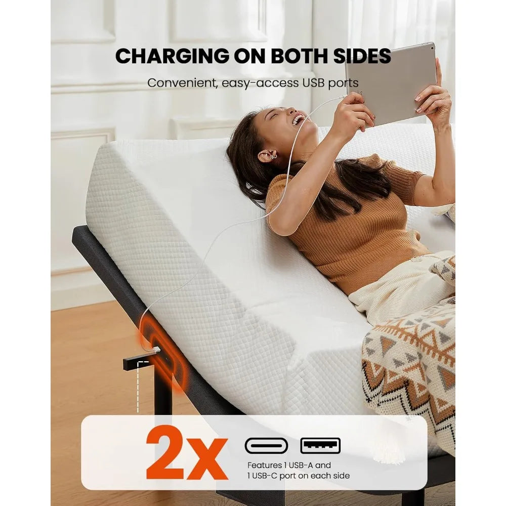 - Adjustable head and foot platform with a soothing massage function to target shoulders, back, and legs, with quiet operation that won't disturb your sleep.
