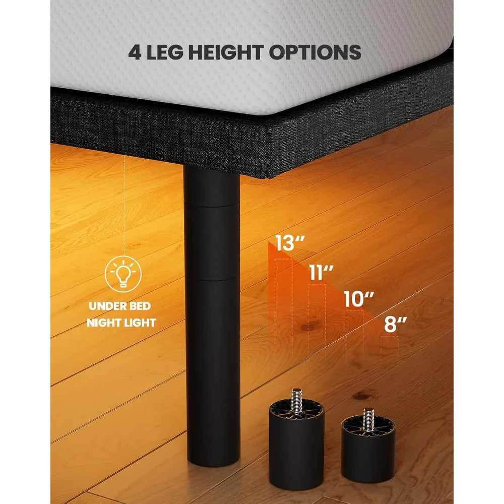 - Sturdy metal frame supports up to 750 pounds, delivering stable, long-lasting support for your mattress and nightly rest, with reinforced joints and vibration damping for a peaceful night.