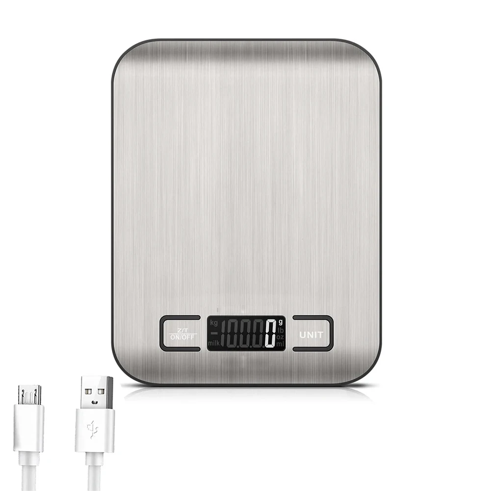 Coffee Scale Digital Kitchen Scale USB Charging Electronic Weights Scales Multifunction for Cooking Baking 1G Up To 10KG Specification: Origin: Mainland China Material: ABS+stainless steel Color: black edge Specifications: 10kg/1g Power supply: 5V built-in rechargeable lithium battery (800 mAh) Display: LCD digital display Accuracy: 1g Display screen size: 41x19mm/1.6x0.74in Buttons: power on/off/zero reset button, unit conversion button Product functions: unit switching function, peeling and zero reset function, overload protection function, low power display function. Unit: g, lb, oz, kg, ml, milk ml Product size: 180.00x140.00x17.00mm/7.09x5.51x0.67inch Weight; 250g