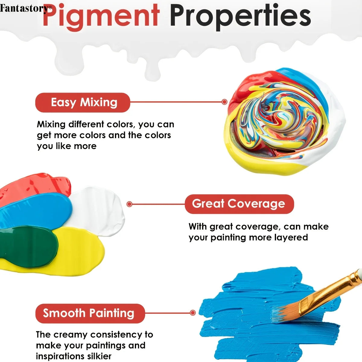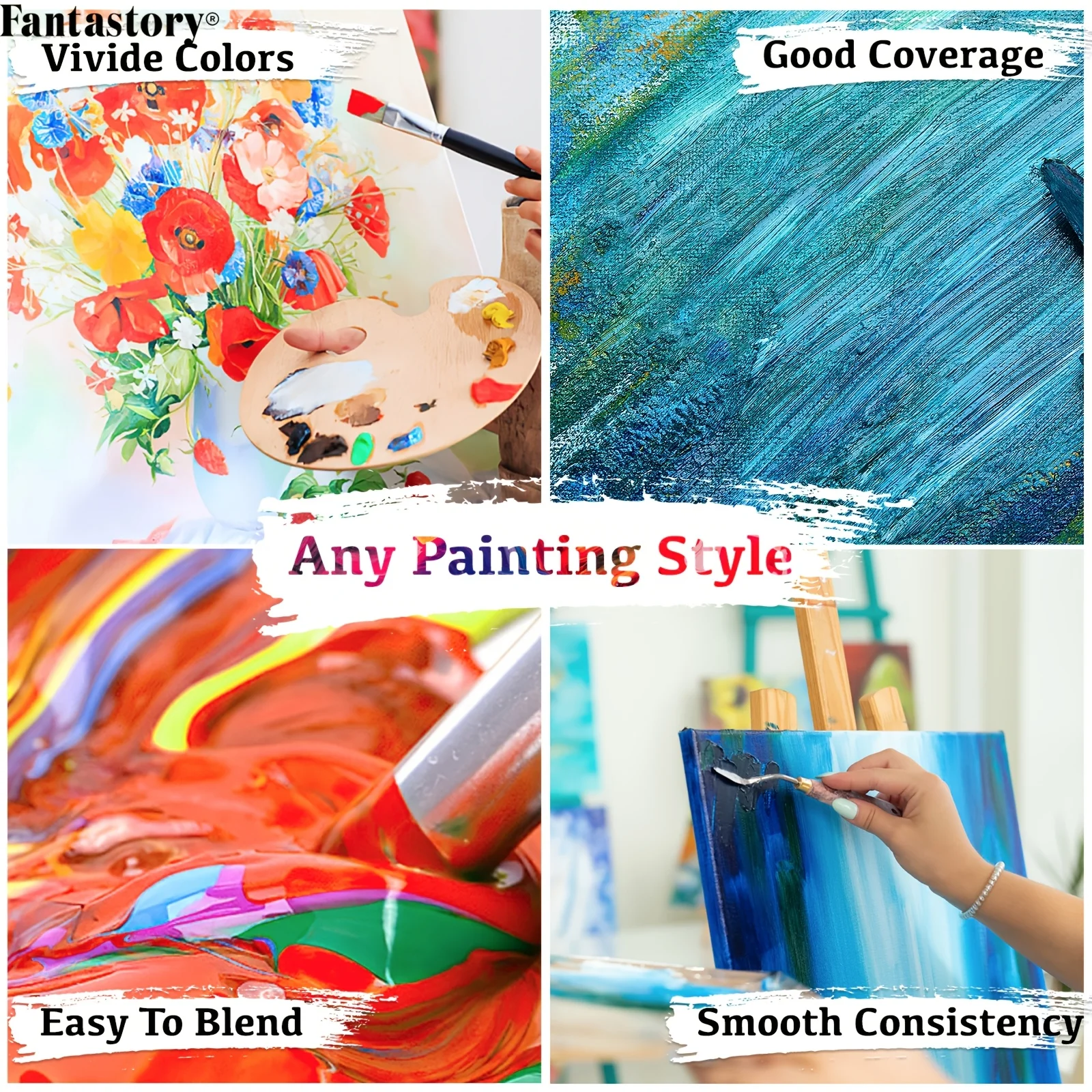 Fantastory 60ml Acrylic Paint Set, Professional Craft Paint With 12 Brushes, Glass/Stone/Wood Painting, Craft Supplies