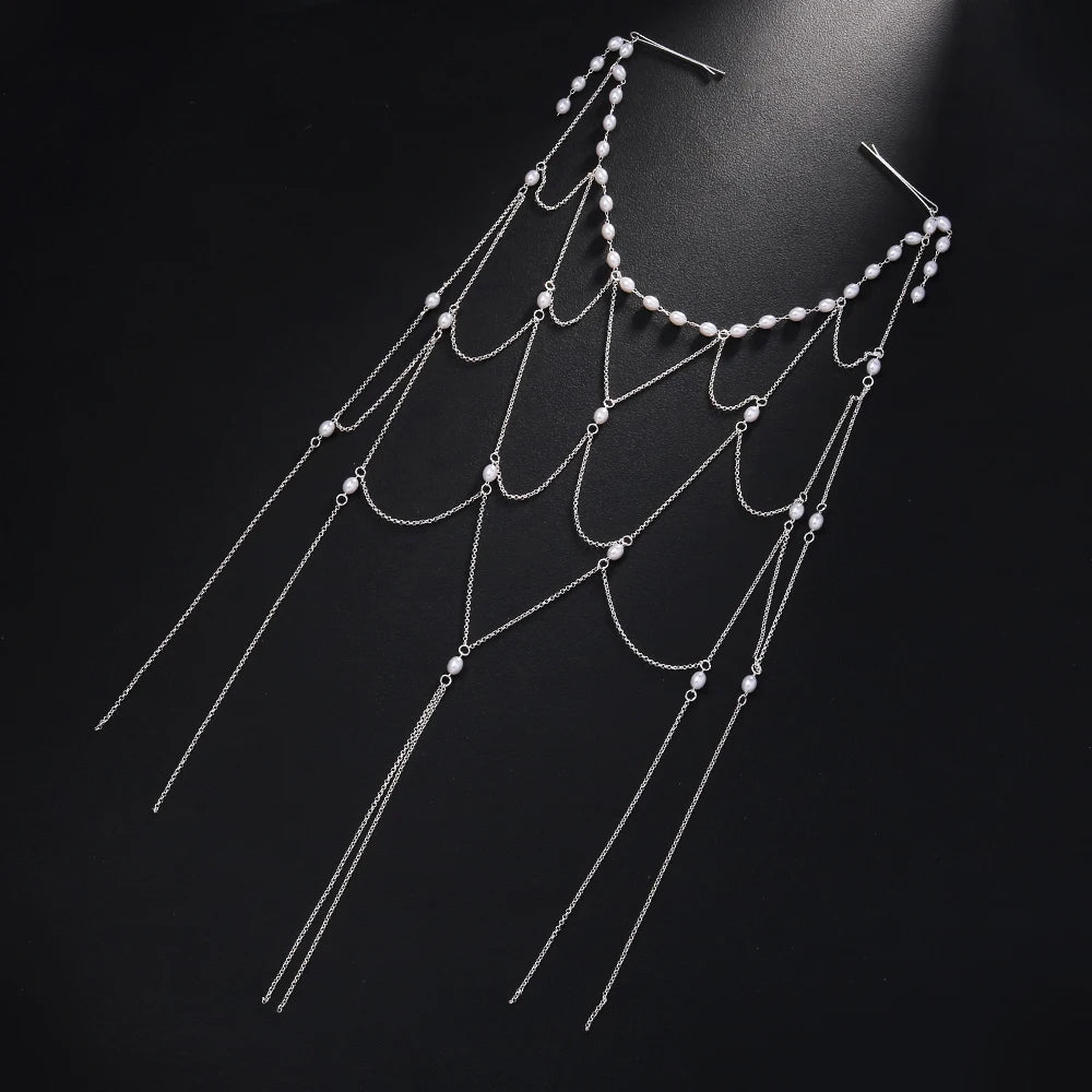 StoneFans Imitation Pearl Tassel Headband Bridal Jewelry