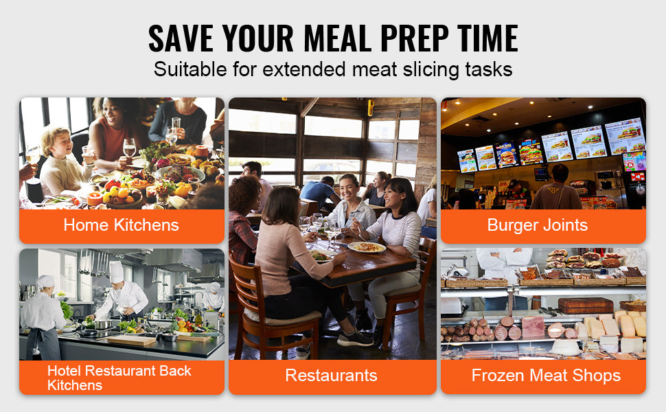 Adjustable Thickness: The slicer comes with a thickness adjustment knob, allowing you to set the thickness from 0 to 0.47 inches (0 to 12mm) based on your preparation needs. Perfect for making burgers, sandwiches, cold cuts, and fruit platters.