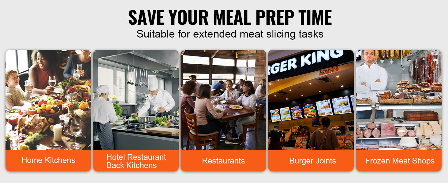 Adjustable Thickness: The deli meat slicer features a thickness adjustment knob with a range from 0-15mm (0 - 0.6 inches). You can easily customize the thickness to meet your preparation needs, perfect for making hamburgers, sandwiches, cold cuts, fruit platters, and more.