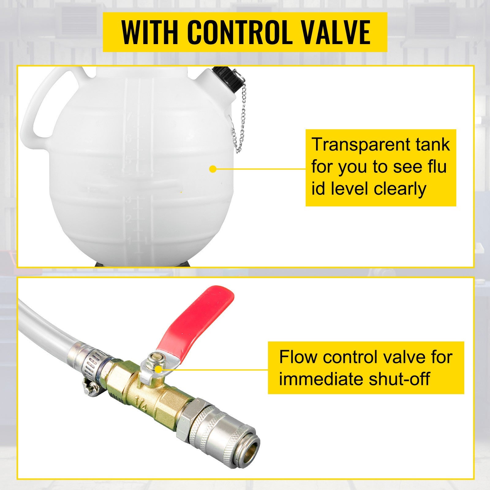 Precise Fluid Management: Designed with a flow control valve to prevent leaks and spills, allowing you to halt fluid dispensing precisely as it reaches the fill level.